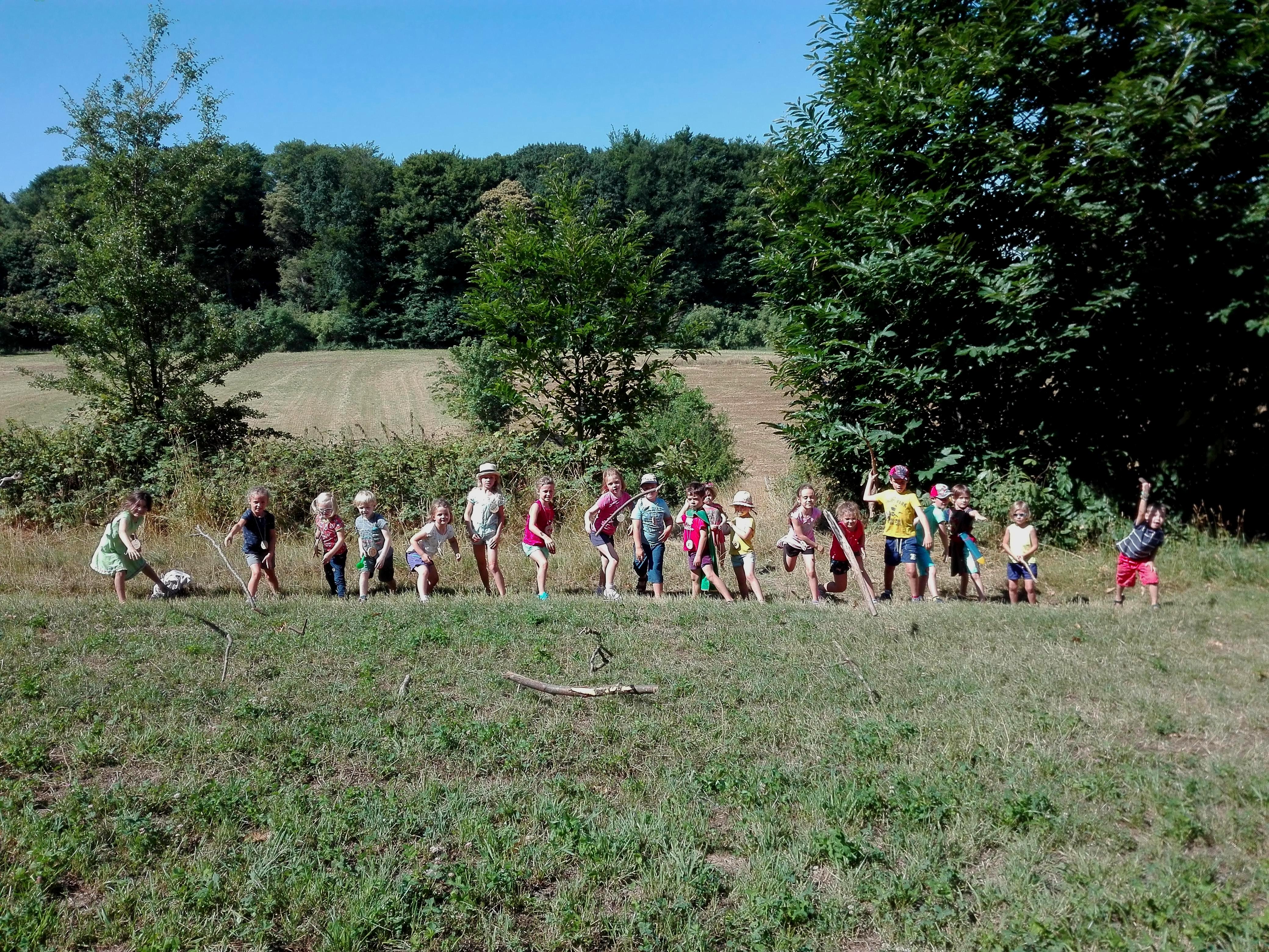 Buitenspel: speelweide en –bos, zoektocht, kamp bouwen, pijl en boog, speerwerpen …