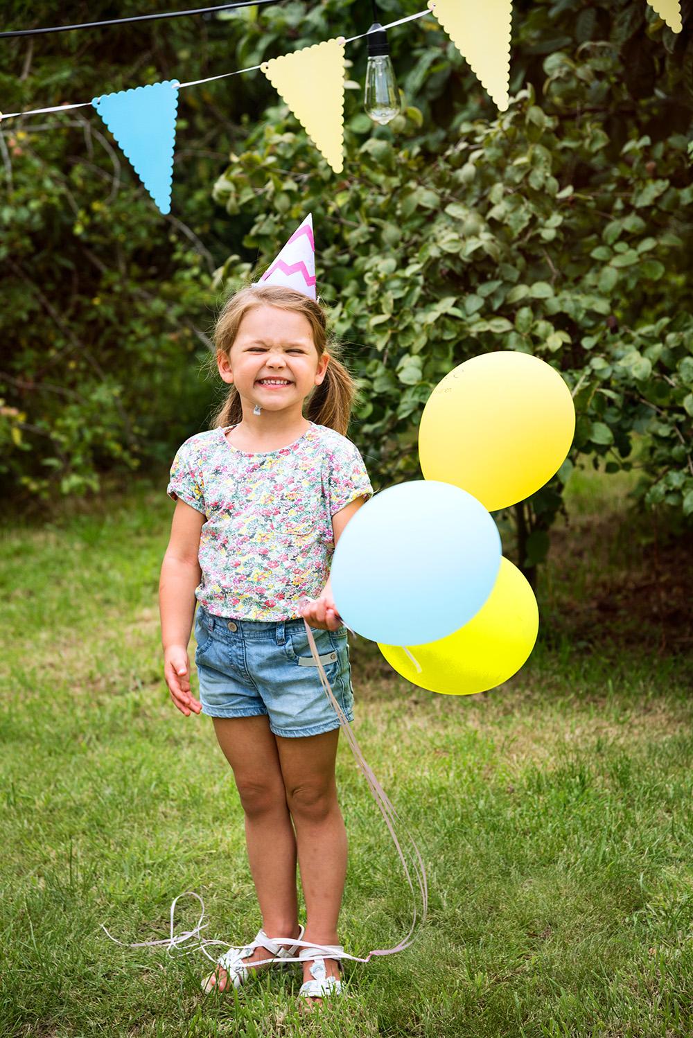 Feestelijke versiering van zaaltje en feest-tafel. Rekening houdend met het lievelingskleur van de jarige.